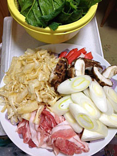 今日は白ネギ、しいたけ、